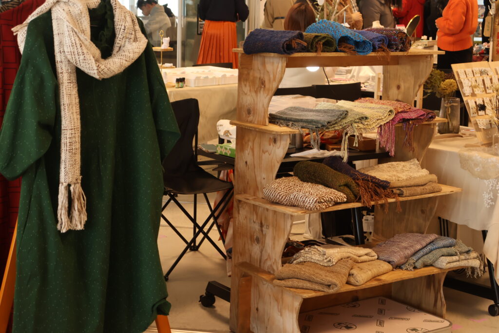 朝から雪が降りやまない予報も出てたので持って行ったのは並べやすいストール類とリメイク服のみ