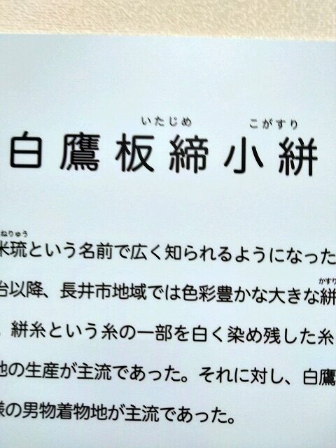 それがこちら「白鷹板締小絣」 興味のある方はどうぞ