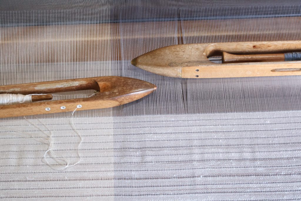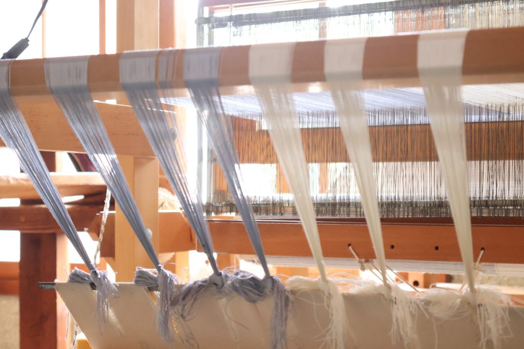 暑さ故最後の緯糸の色は迷うことなく涼しげな生成り色にしました。
