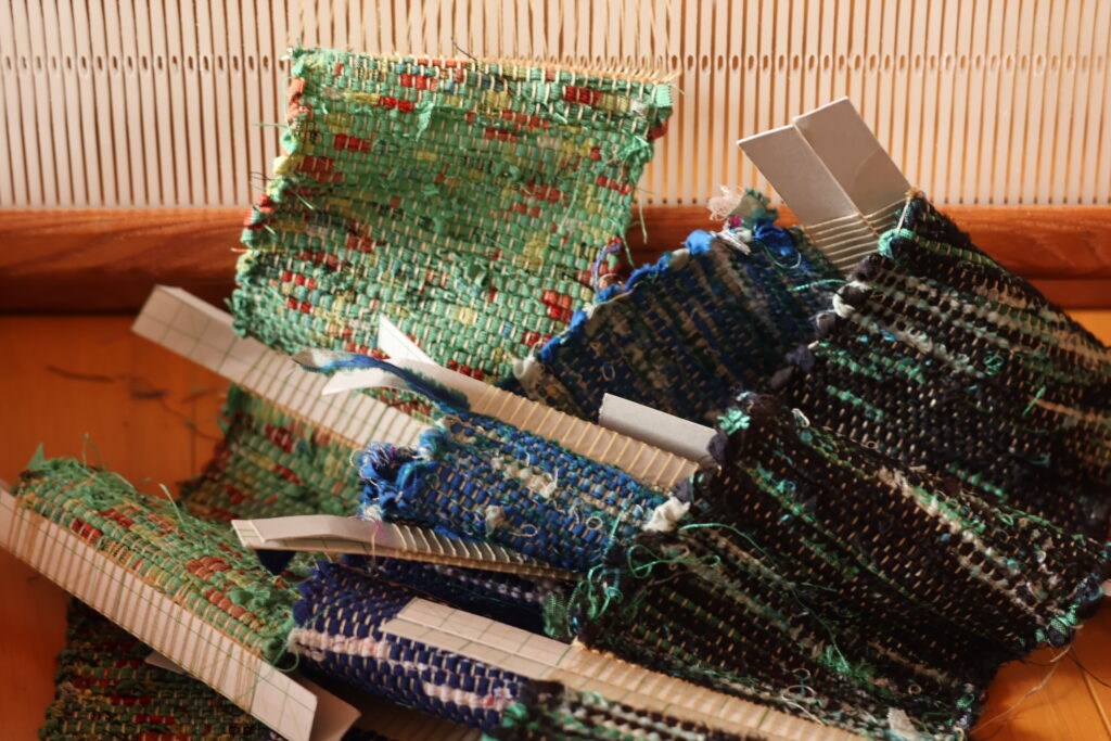 なのでスキマ時間で裂き織りコースターを織ってました。