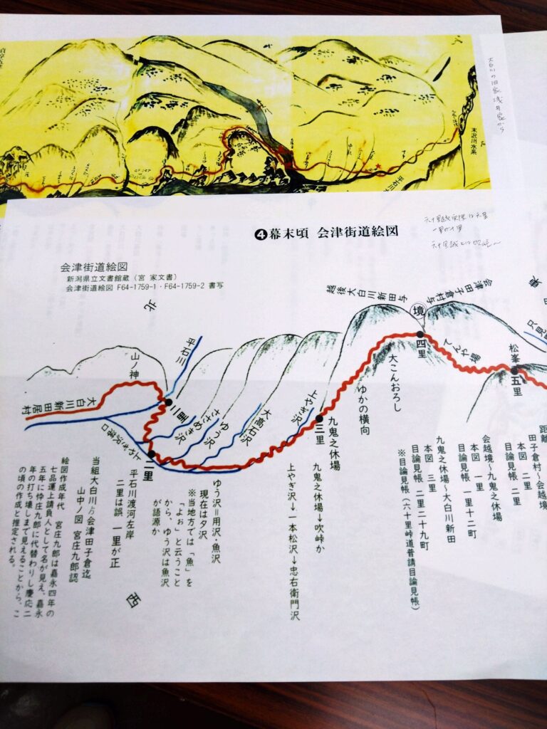 実際の内容は地元郷土史家さんらしい年配の方がプロジェクターで映した江戸時代の六十里越などの絵地図や古文書を見ながらいろいろなお話をされ、もちろんそうゆう話に興味があればが前提でクーラーのきいた涼しい部屋でなんの苦労もなく新しい知識発見をいただける受け身の心地よいひとときもたまにはいいよね♡とクセになるかも?