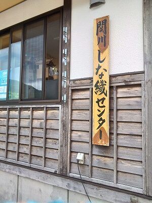 まずは金曜日、前日搬入に向かう途中、3月はまだ道が冬季閉鎖中でたどりつけなかった「関川しな織センター」にようやく立ち寄ることができました。