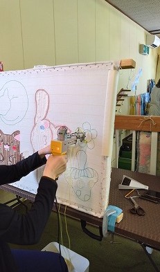 銃みたいな道具を使って毛糸などの太糸を布に打ち込んでいって絨毯みたいな作品を作る技法のことらしく初めて見ました。