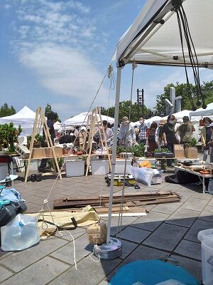 いきなり台風の余波の突風が吹き始めて、あおられた横幕で倒れたテーブルが散乱したまま通りすがりの何人ものお客さんに吹き飛ばされそうになっていたテントを押さえてもらいながらの周りのお店から物が落ちて壊れる音を聞きながらの接客もあったりのてんやわんやの数時間を過ごしました。