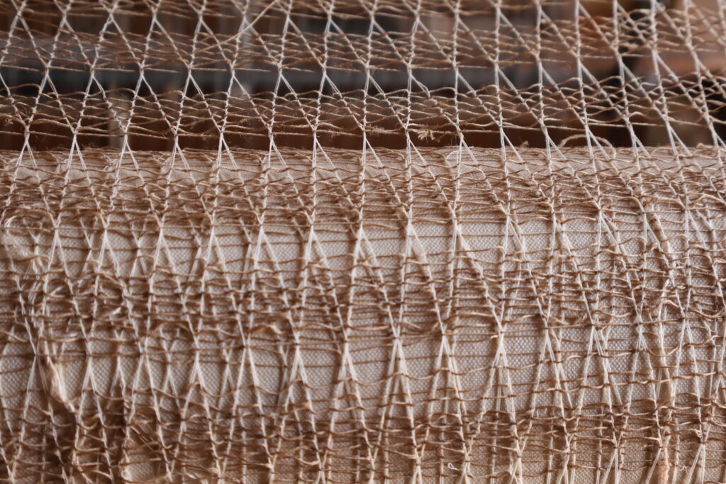そのついでに手元の作業の写真も1枚、経糸を手で絡ませています。