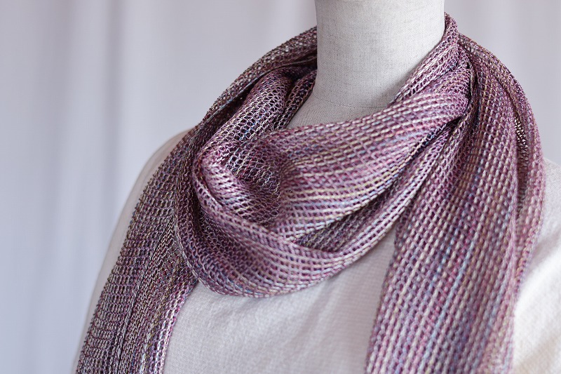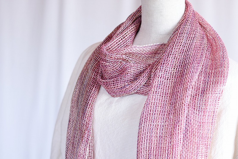 透け感が特徴で春先からの活躍が期待される捩り織りマフラー 欠色だったピンクとラベンダー をHP内のネットショップに追加掲載しました。