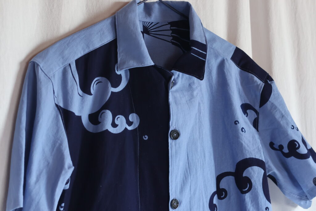 波模様の浴衣リメイクのアロハシャツとダボシャツ