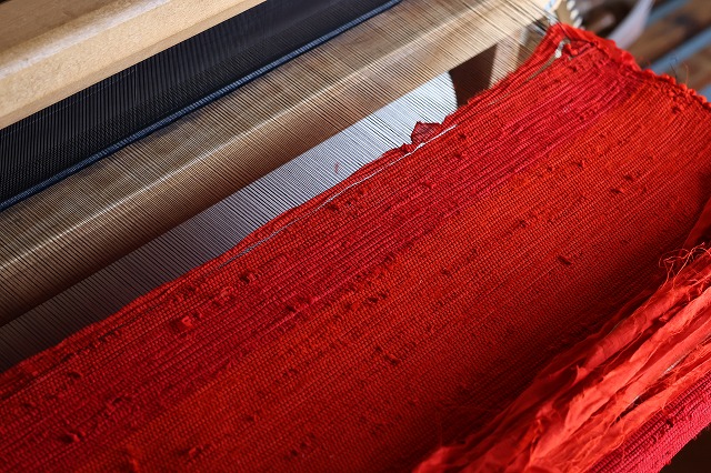 紅絹の裂き織り 2023年12月25日 最終更新日時 : 2023年12月25日 mano 紅絹の裂き織りって、みかけなくなって久しいです。色とか風合いとかが手間の割には今時にはマッチしないのが大きいかと思うけど…材料も揃って、適当な経糸もあったのでとりあえず生地として織り始めました。 FacebooktwitterHatenaPocketCopy