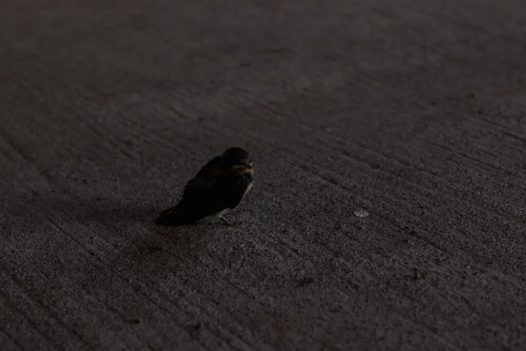 先ほど用事から戻ってきたら燕の雛一羽が巣から落っこちていました。