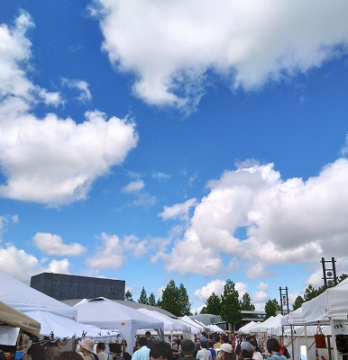 昨日あれほど降っていた雨は今朝のうちにはあがりはしましたが…ペグが打てない舗装会場で時折吹く強風にドキドキしながらのいつもの長岡出店の初日でした。