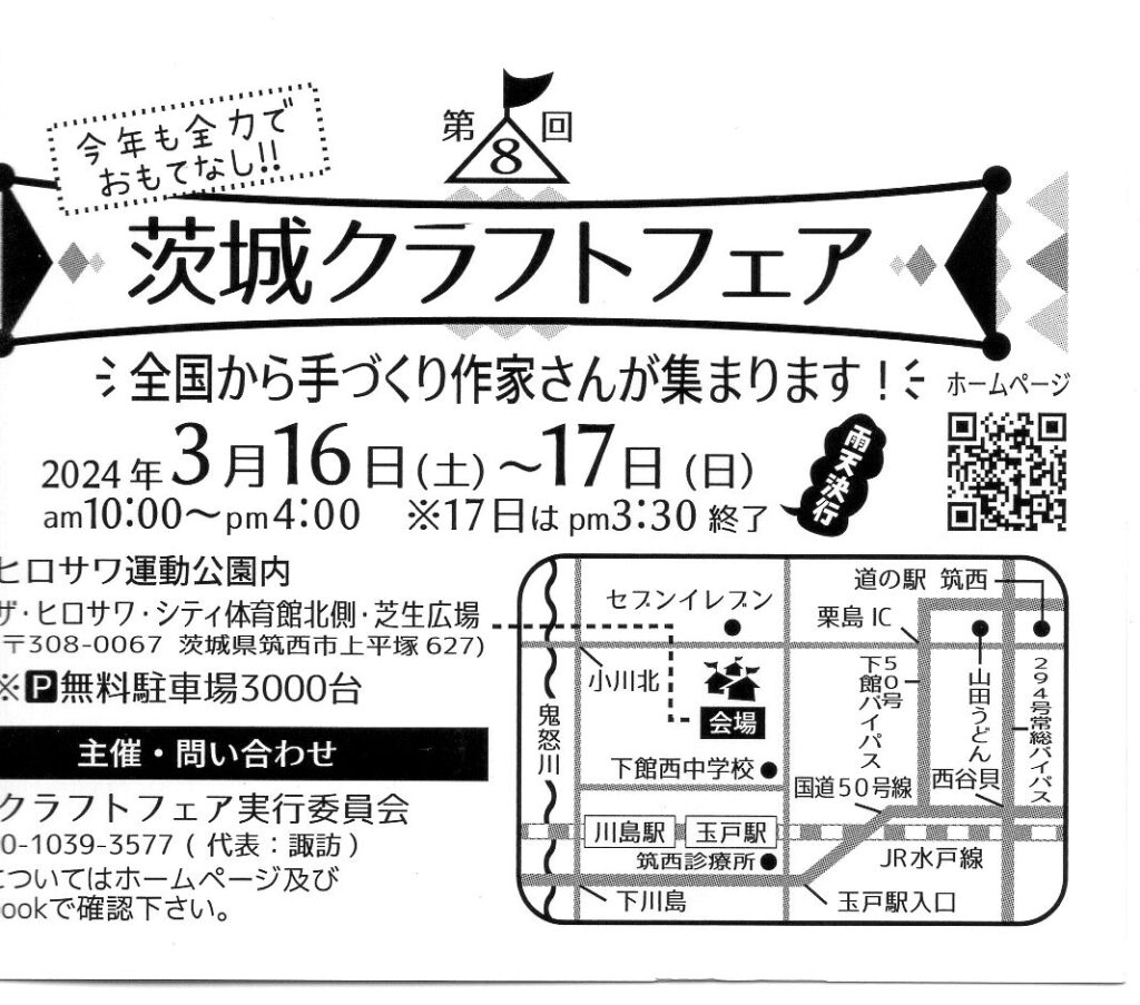 茨城県築西市で開催の茨城クラフトフェアに出店します。