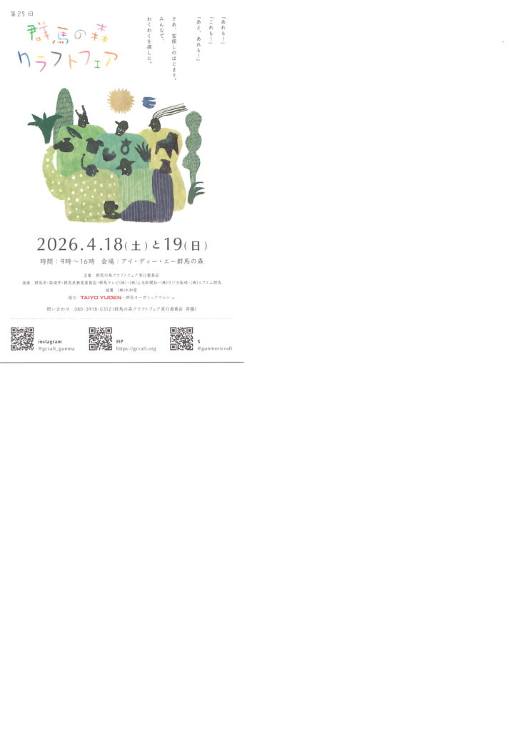 4月18日(土)・19日(日)群馬の森クラフトフェア(群馬県高崎市)