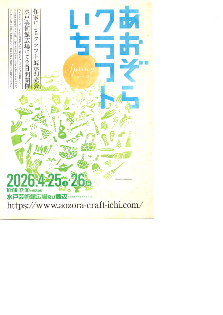 4月25日(土)・26日(日)あおぞらクラフトいち(茨木県水戸市)
