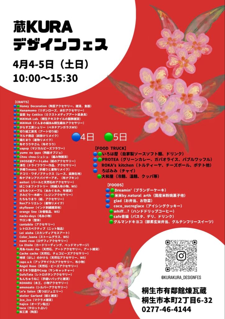 4月4日(土)・5日(日)蔵クラデザインフェス(群馬県桐生市)