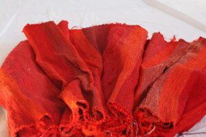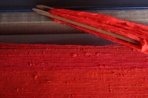紅絹の裂き織り