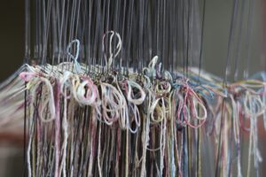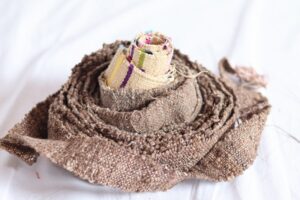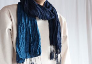 以前載せた試織してみたシルク縮マフラー↑ いい感じだったので残りの経糸全部、緯糸の色を変えて縮マフラー(仕上げ後しぼが入ってくれることを願って)織ってみました。織り上げた枚数が6枚 昨日6枚全部一回でのの仕上げを試みたの […]