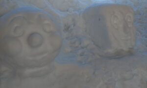 雪だるまをこしらえているのかと思っていたらアンパンマンでした(笑)見本もなくフリーハンドでチャチャチャとこしらえていたのが凄い!(おじさん)今度はつばくろうの雪像をこしらえてほしいな