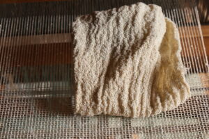 強撚のおもしろい絹糸が手に入ったのでこれを使って編んだような風合いのストールを目指して試織の準備を始めました。 とりあえず整経作業が終わったところです。 このあともまずは設計どおりに進めていこうと思っています。