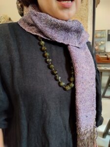 品切れしていた30cm幅のシルクマフラー補充しました。とはいってもタッサーシルク糸は生糸みたいに一定の規格がないので色や太さはその時々、そのため以前と全く同じものには織り上がらず、同じようだけどちょっとちがう織り上がった […]
